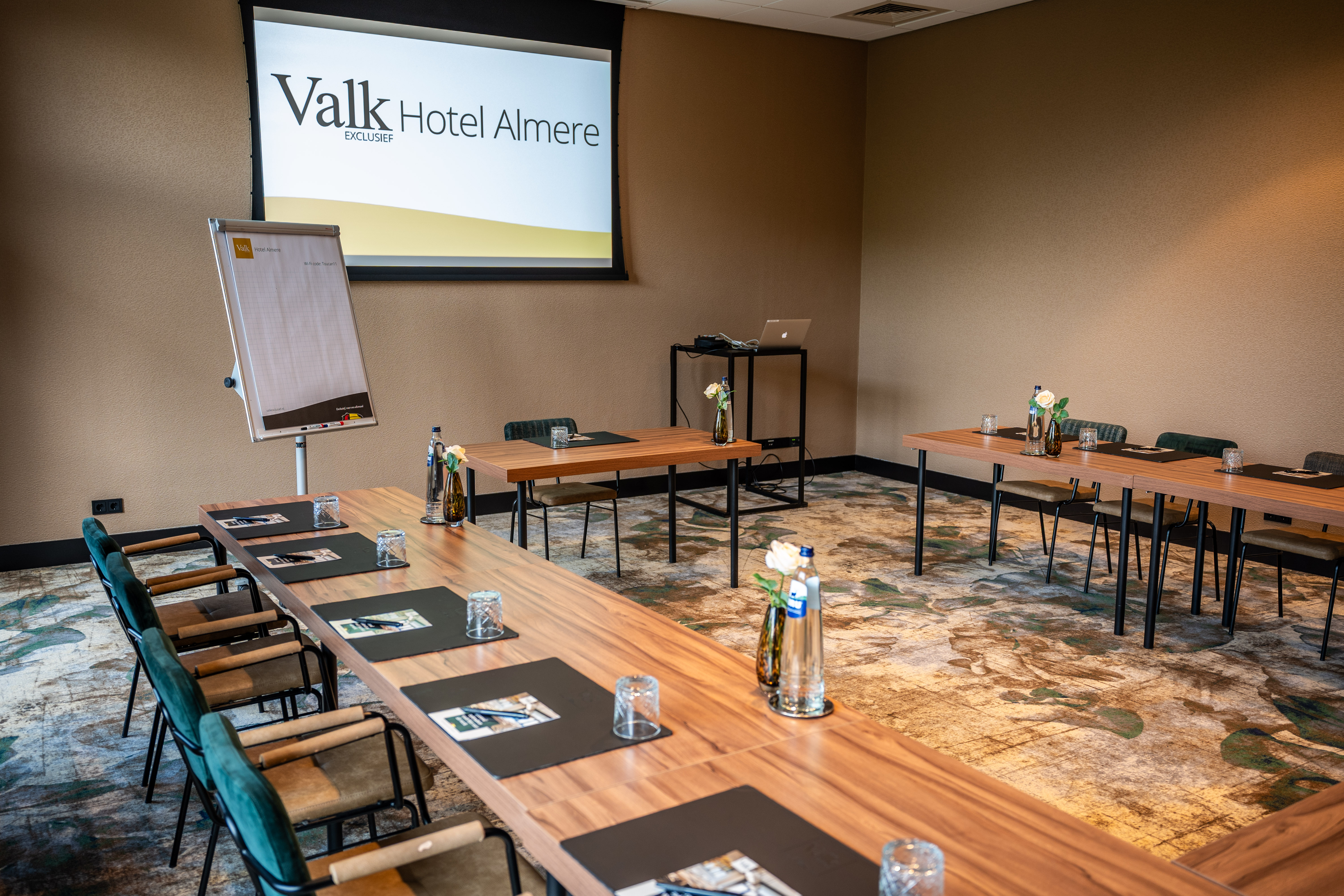 Alle faciliteiten voor een succesvolle vergadering of evenement zijn aanwezig in Hotel Almere. Zaalverhuur gaat in combinatie met een vergaderarrangement. In uw arrangement zit het gebruik van nieuwe HD-beamers om professionele presentaties te geven. Schrijfwaren, flipovers en whiteboards zijn aanwezig. En onbeperkt koffie, thee, mineraalwater en frisdrank zit hier ook altijd bij in. Tijdens de pauze kunt u gebruik maken van onder andere gezonde snacks zodat u daarna uw evenement of vergadering weer fris en fruitig kunt voortzetten.